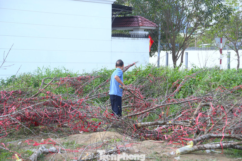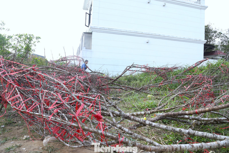 Theo một số tiểu thương, đây là số đào ế còn lại sau nhiều ngày bày bán trên tuyến đường này. Những ngày giáp Tết, khu vực đường 72 m vốn là điểm tập trung nhiều người kinh doanh đào. Tuy nhiên, sức mua năm nay chậm, lượng khách thưa thớt khiến nhiều chủ hàng rơi vào cảnh tồn đọng lớn.