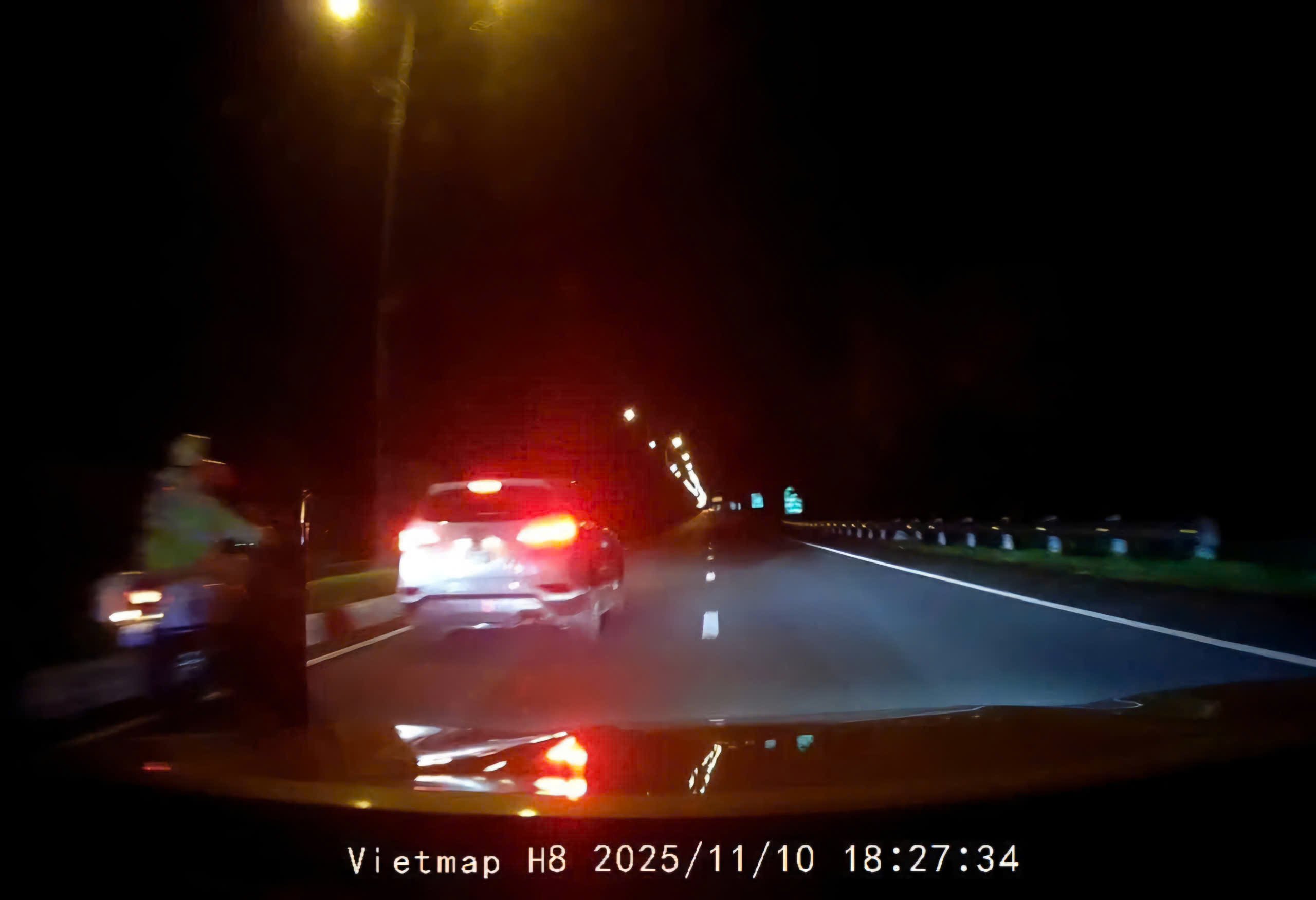 Vụ việc xảy ra lúc 18h40 ngày 10.11, tại Km215+100 trên cao tốc. Khi lực lượng CSGT đang dẫn đoàn xe cùng chiều và phát tín hiệu yêu cầu nhường đường.