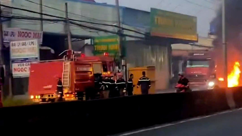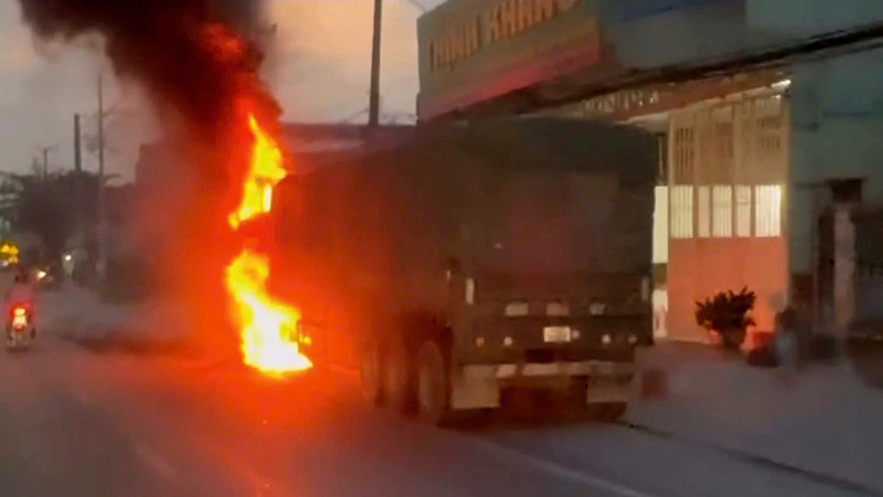 Sáng sớm 16/1, một xe đầu kéo đang lưu thông trên quốc lộ 1A, đoạn qua xã Cái Bè, tỉnh Đồng Tháp bất ngờ bốc cháy, rất may không có thiệt hại về người.