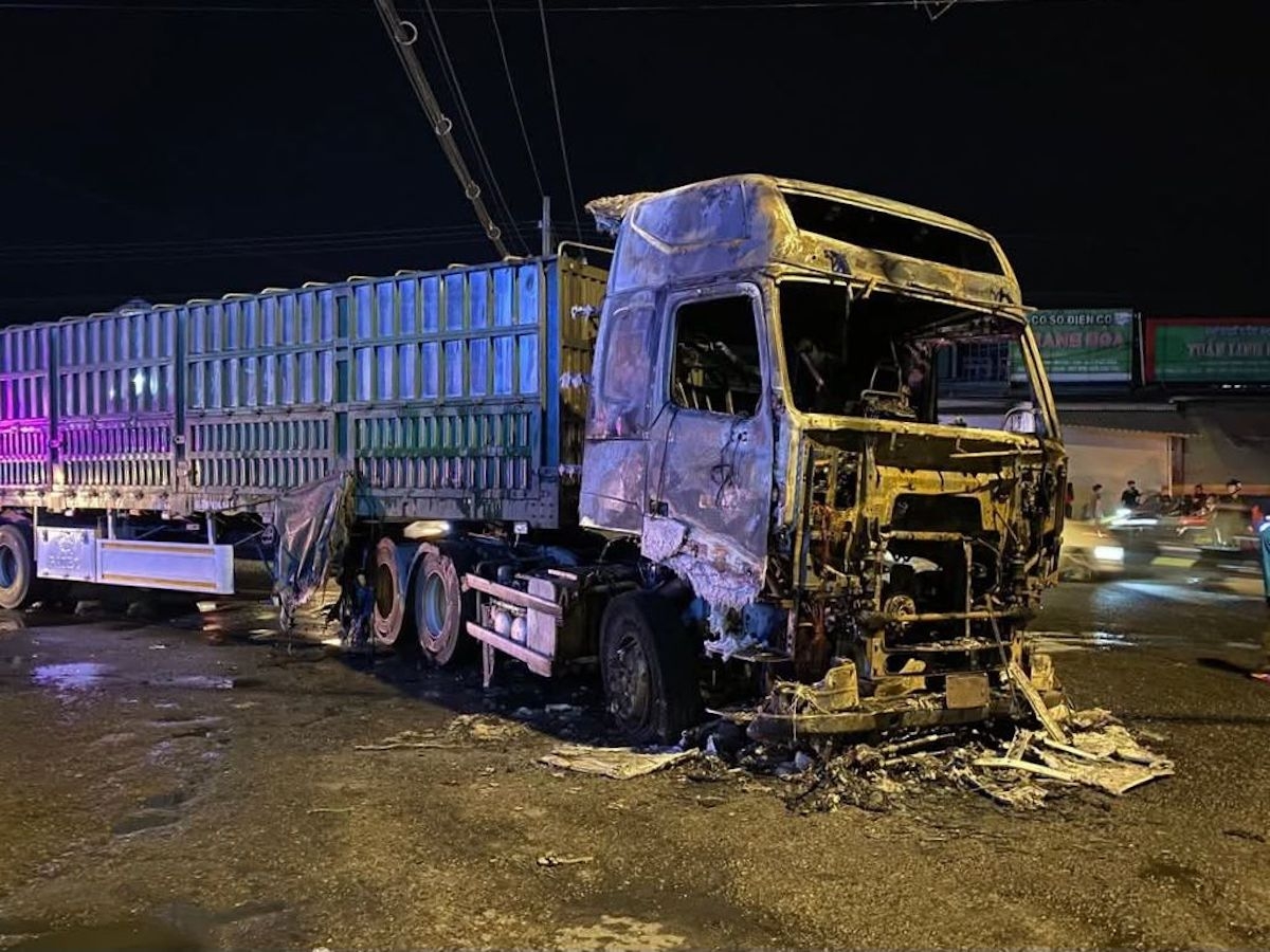 Khoảng 21h ngày 22/1, xe đầu kéo chở container chạy trên quốc lộ 1, khi rẽ về hướng phường Phước Tân (TP Biên Hòa cũ) đã va chạm xe máy do một phụ nữ cầm lái chở theo hai trẻ nhỏ. Cú tông làm ba người ngã xuống đường, phần đầu xe container bất ngờ bốc cháy.