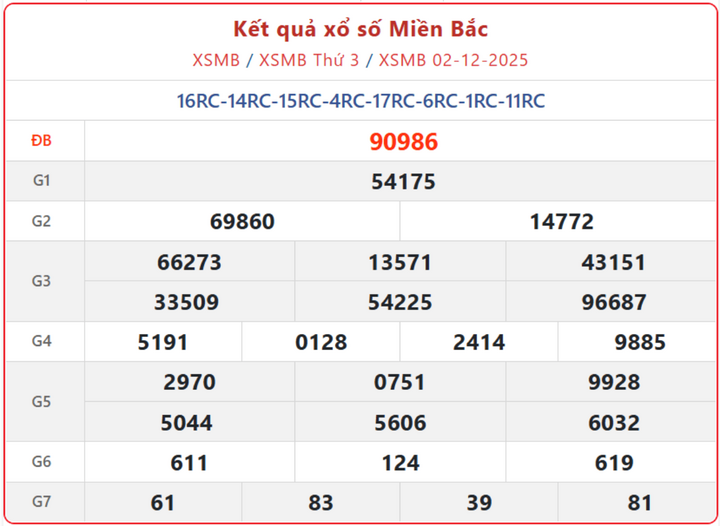 - Xổ số miền Bắc mới nhất ngày 2/12/2025. Xem lại KQXSMB ngày 2/12/2025