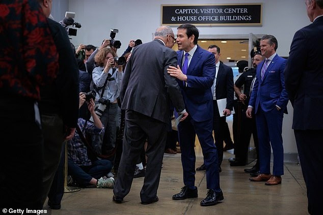Trước đó trong ngày, ông Rubio được thấy chụp ảnh ôm lãnh đạo phe thiểu số Hạ viện Chuck Schumer tại Capitol Hill - nơi đặt trụ sở Quốc hội Mỹ ở Washington, D.C. Đôi giày da bóng của ông lộ rõ, nhưng bị rộng hơn so với chân.
