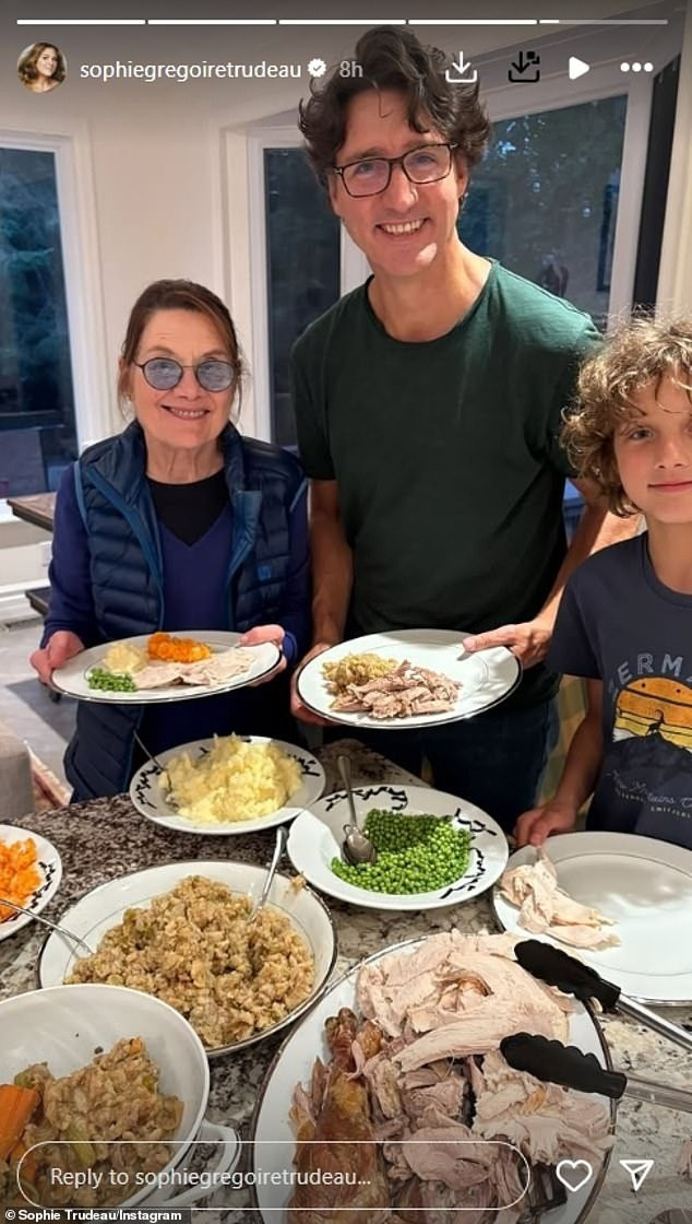 Ngoài ra, trên Instagram Story, bà Sophie chia sẻ ảnh ông Justin cùng gia đình trải qua Lễ Tạ ơn ở Canada.