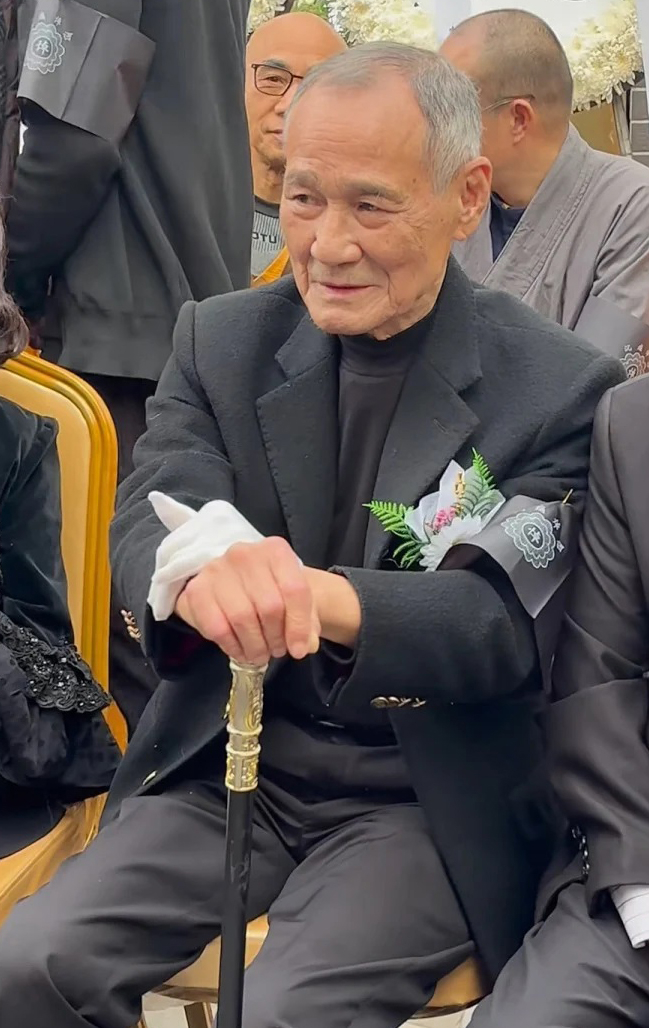 Ông Trần Huệ Mẫn, cao thủ làng phim võ thuật Hong Kong, chống gậy đến viếng đồng nghiệp Lương Tiểu Long.