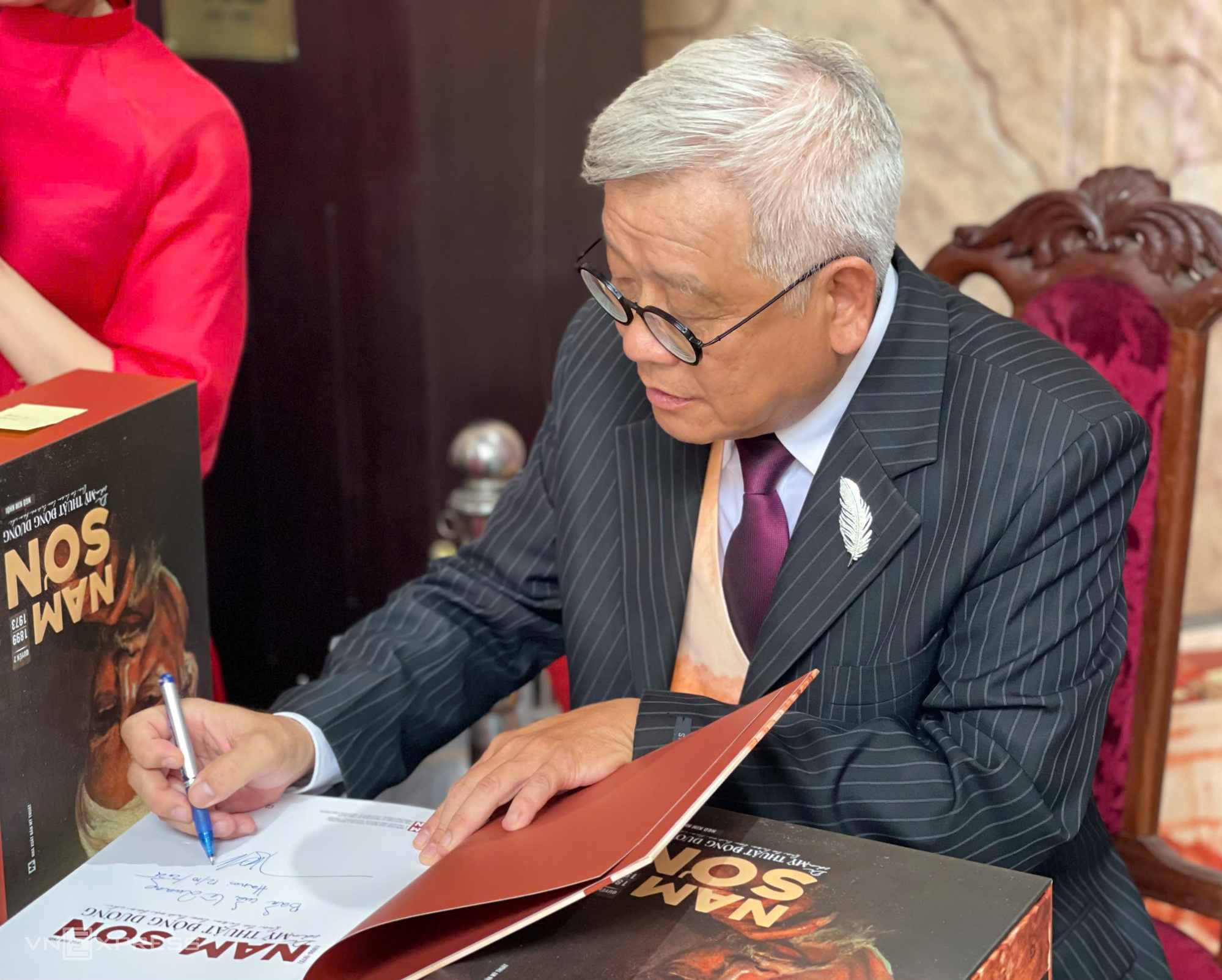 Nhà nghiên cứu mỹ thuật Ngô Kim Khôi, 66 tuổi, là con trai bà Nguyễn Thị Ngọc Trâm - con gái thứ ba của danh họa Nam Sơn. Ông định cư tại Pháp từ năm 1985, là nhà thiết kế thời trang, từng làm việc cho các thương hiệu lớn như Hermès, Christian Dior, Givenchy. Ông tự học hội họa và đã dành hơn 30 năm nghiên cứu lịch sử mỹ thuật Việt Nam.