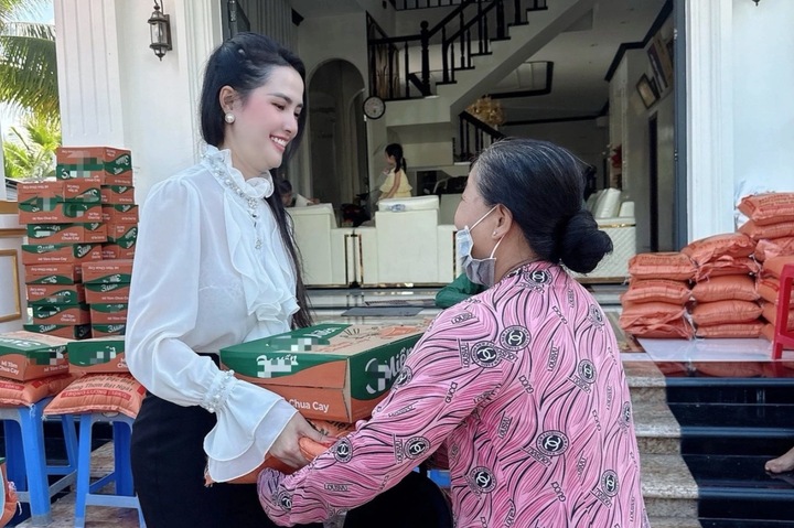 Vừa qua, người đẹp có dịp trở về quê nhà Đồng Tháp (Tiền Giang cũ) để tham dự lễ khai giảng tại Trường Tiểu học Trương Văn Sanh (phường Cai Lậy). Tại đây, cô vui mừng khi được gặp các thầy cô, đồng thời dành tặng 100 phần quà và tiền mặt hỗ trợ những hoàn cảnh vượt khó trong học tập.