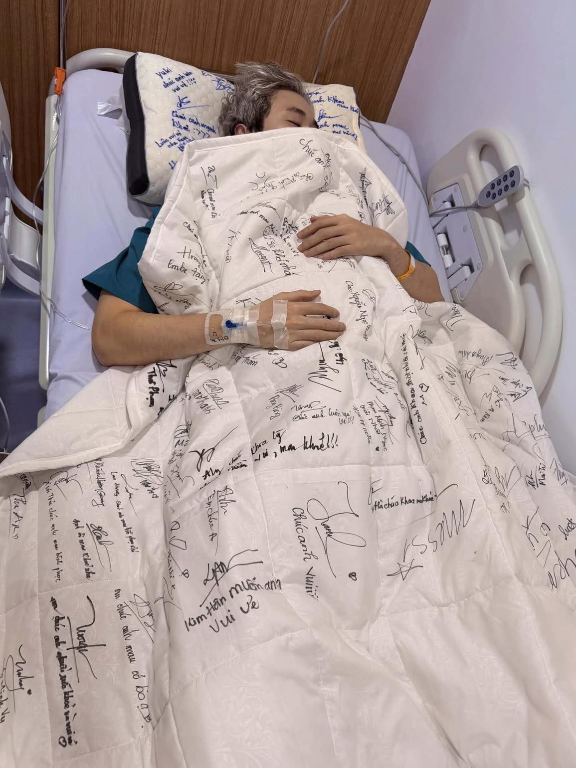 Ngày 20/1, một số đồng nghiệp vào bệnh viện thăm rapper. Trên giường bệnh, Karik đắp chăn, kê gối có hàng trăm chữ ký của người hâm mộ. Anh cảm ơn khán giả vì đã gửi lời động viên, hỏi thăm thông qua fanpage, đại diện FC.