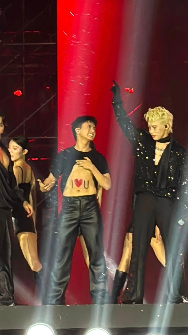 Tranh thủ quãng thời gian giao lưu ít ỏi, các nghệ sĩ lồng ghép những chiêu trò, kết hợp tung hứng mảng miếng để "bơm" nhiệt cho fan. Như hình ảnh Bùi Công Nam viết chữ "I love You" trên cơ bụng, Duy Khánh "tiểu phẩm" cùng Jun Phạm hay những bộ cánh "có một không hai" lung linh từ BB Trần.