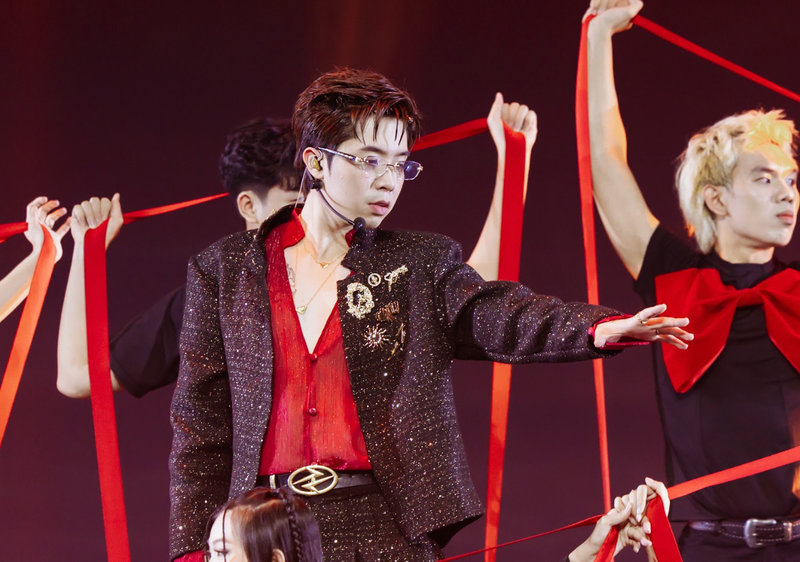 Tiếp đó, OgeNus mang đến Anh không đến để rời đi, câu chuyện tình dễ thương được phát triển từ câu nói của MC Trấn Thành. Sân khấu rực rỡ gấu bông và bóng bay thể hiện nhiều phiên bản nghệ sĩ của anh: rapper, producer, performer…