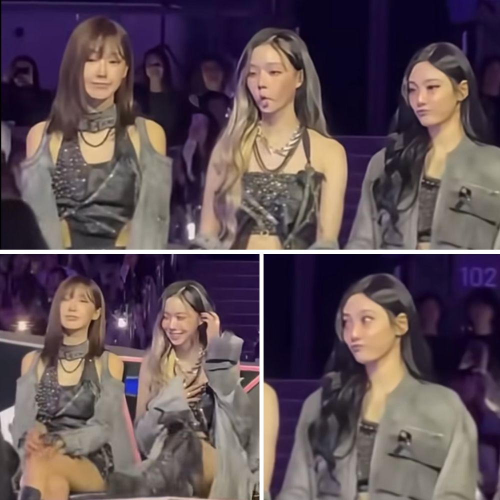 Sau đó, cộng đồng mạng lại soi ra biểu cảm kỳ lạ, thiếu nghiêm túc của Winter và NingNing khi G-Dragon bước qua.