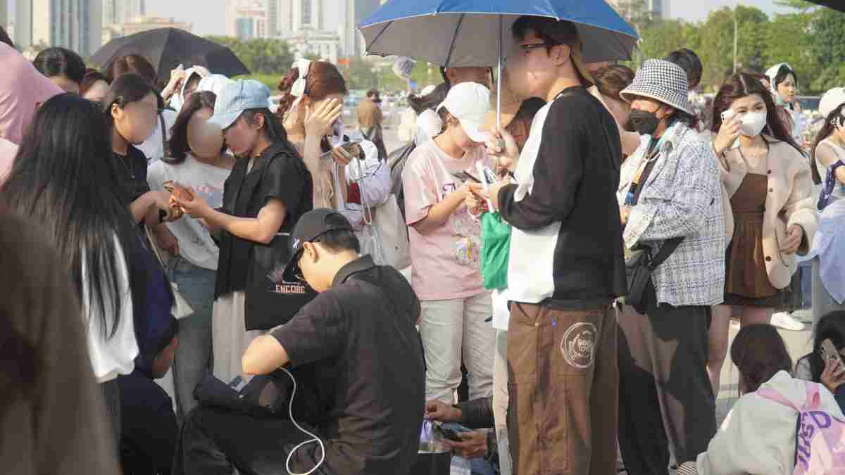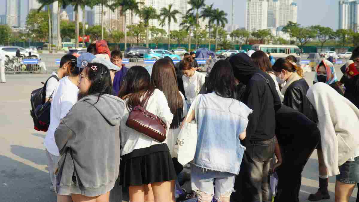 Song song với dòng người xếp hàng đổi vòng và check-in, thị trường mua bán vé “chợ đen” cũng trở nên sôi động. Nhiều người cầm theo xấp vòng tay (thay vé check-in) đứng quanh khu vực cổng vào, liên tục mời chào khán giả với mức giá thấp hơn so với giá ban đầu.
