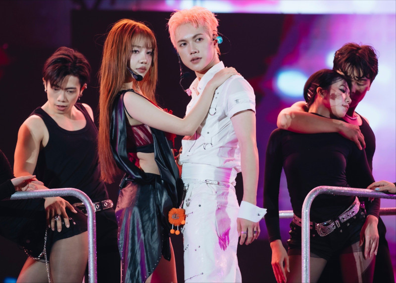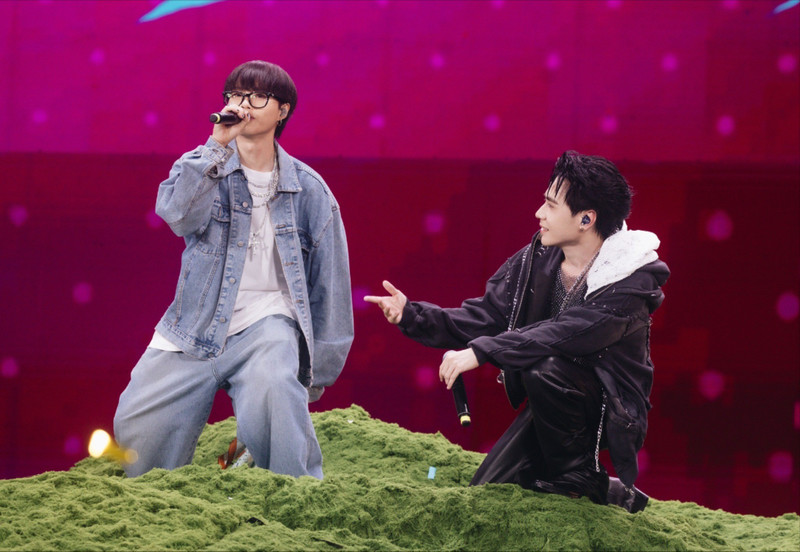 Anh cũng lần đầu kết hợp Low G (trái) trình diễn bản hit Chất gây hại và khách mời Lou Hoàng.