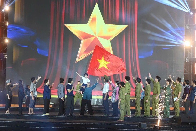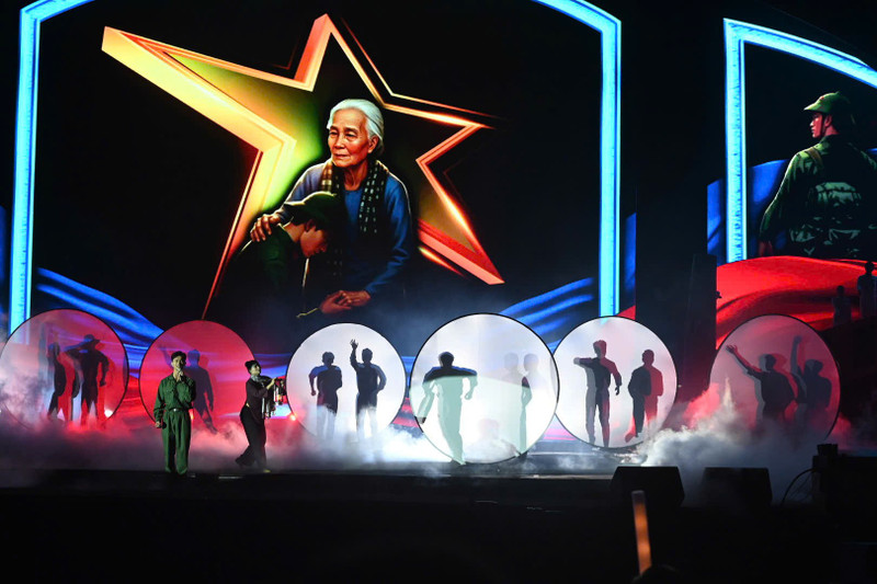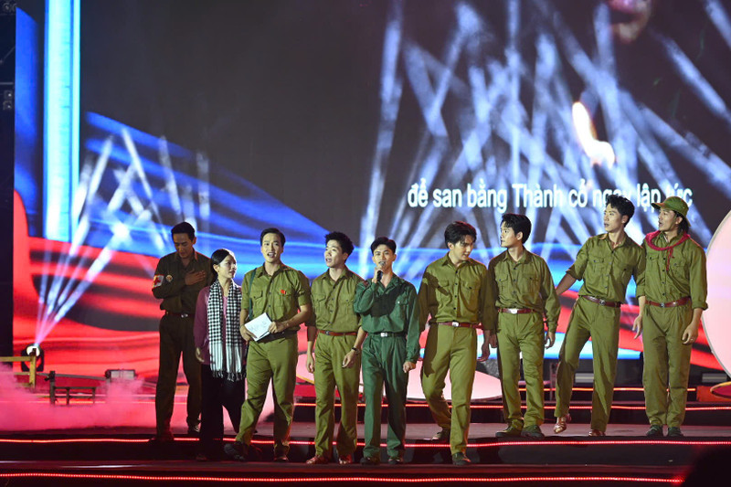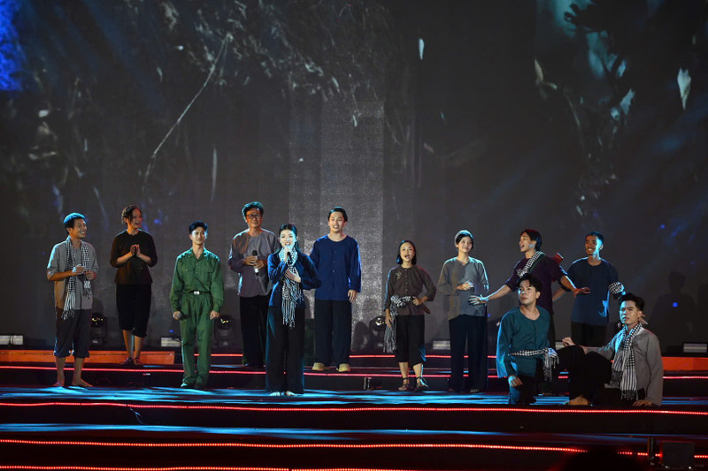 Đặc biệt, tiết mục mashup nhạc phim từ ba tác phẩm Mưa đỏ, Địa đạo - Mặt trời trong bóng tốiTử chiến trên không đã gây sốt, nhận được sự cổ vũ nồng nhiệt của khán giả khi gợi lại không khí hào hùng của những ngày tháng lịch sử.