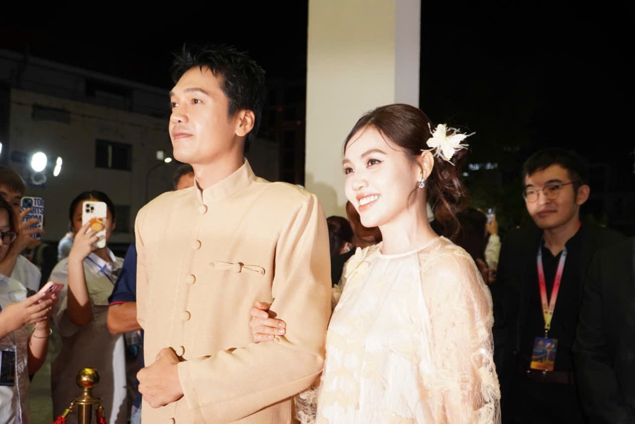 Năm nay, nhiều đoàn làm phim quy tụ tại bế mạc Liên hoan Phim Việt Nam, tạo nên không khí sôi động ngay từ thảm đỏ. Trong số đó, ê-kíp “Mưa đỏ” của đạo diễn Đặng Thái Huyền cùng dàn diễn viên Đỗ Nhật Hoàng, Đình Khang, Lâm Thanh Nhã, Hứa Vĩ Văn, Hạ Anh… xuất hiện nổi bật và nhận được sự cổ vũ nồng nhiệt từ khán giả.
