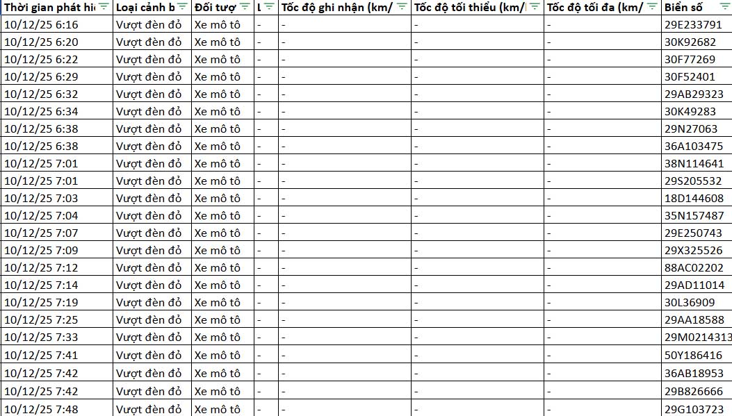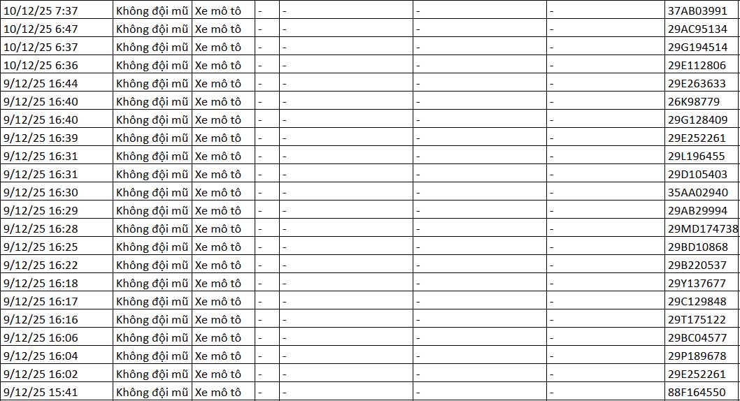 Danh sách xe máy bị phạt nguội qua camera AI tại Hà Nội từ ngày 9-10.12