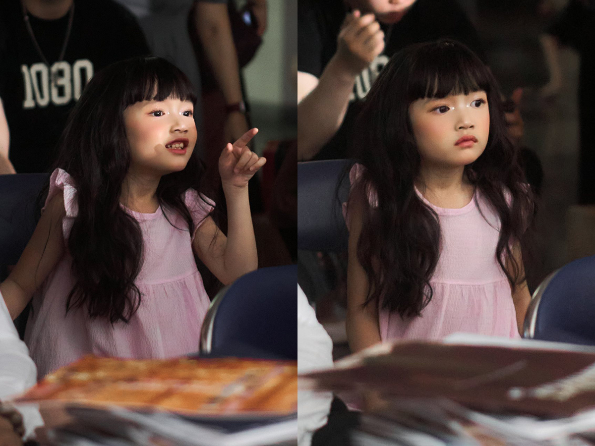 Trong buổi casting, bé Destiny để kiểu tóc xoăn mái ngố, diện váy babydoll màu hồng. Cô nhóc thể hiện nhiều biểu cảm vui tươi, tỏ ra dạn dĩ trước ống kính. Người hâm mộ nhận xét Destiny càng lớn càng giống mẹ Nhã Phương.