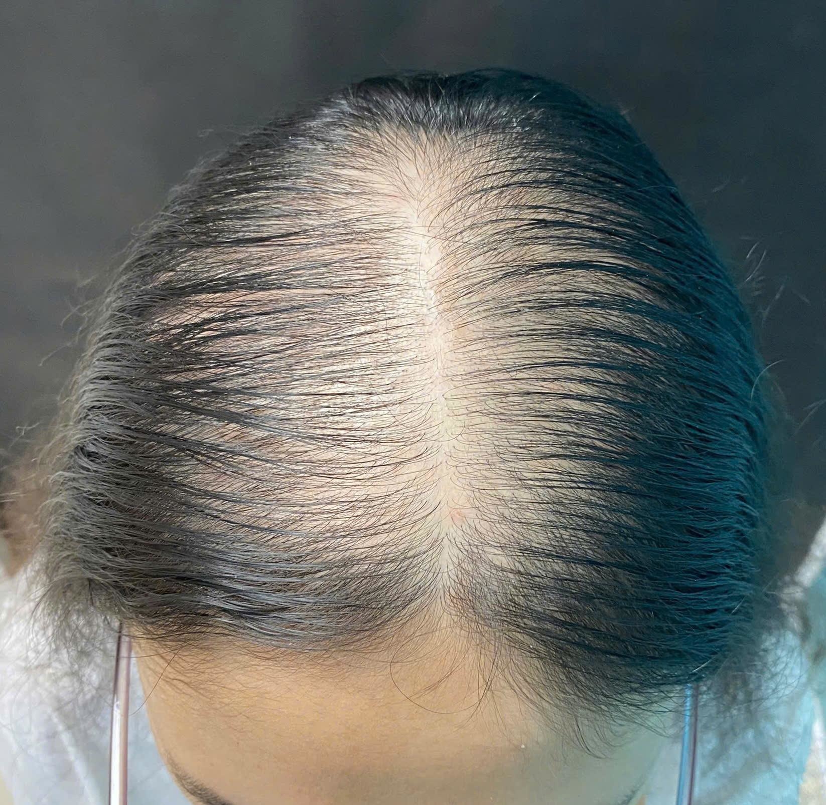 Bước vào tuổi 24, Quỳnh Anh (TP HCM) cảm nhận tóc rụng nhiều, hơn 100 sợi mỗi ngày. Sau 4 năm, khu vực rụng không có khả năng mọc lại, dẫn đến da đầu thưa, lộ mảng hói.