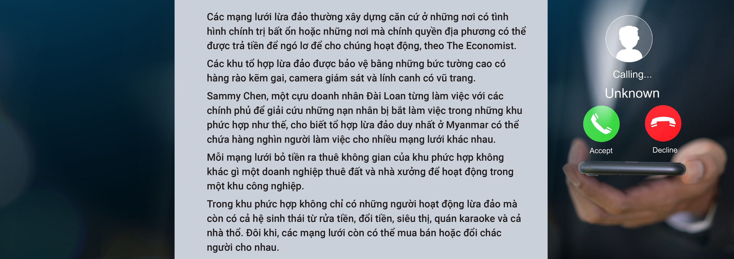 Ngày nay, chỉ với kết nối Internet và nghệ thuật dẫn dắt tâm lý tài tình, những kẻ lừa đảo trực tuyến - mà nhiều người trong số họ cũng chính là nạn nhân của lừa đảo và buôn người - có thể đánh lừa cả CEO ngân hàng, nhà khoa học có bằng tiến sĩ, và người thân của điều tra viên thuộc Cục điều tra liên bang Mỹ (FBI), theo loạt điều tra của tạp chí The Economist xuất bản tháng 2-2025.
