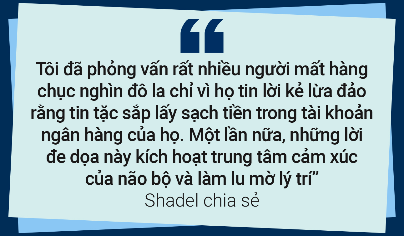 Shadel kể lời thú nhận của một tay lừa đảo đã sa lưới pháp luật: "Tôi hỏi họ liên tục cho đến khi tìm ra điểm yếu cảm xúc của họ".