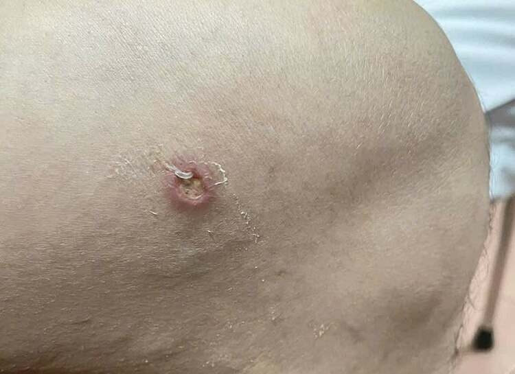 Ngày 10/5, đại diện Trung tâm Y tế huyện Yên Lập cho biết bệnh nhân ban đầu xuất hiện nốt rát sẩn màu hồng nhạt trên da vùng hông trái, sau 5 ngày nổi thêm đường ngoằn ngoèo nhỏ dài 5-6 cm ở vùng gối trái, da khô, ngứa từng cơn, không chảy dịch, không hóa mủ hay sốt.
