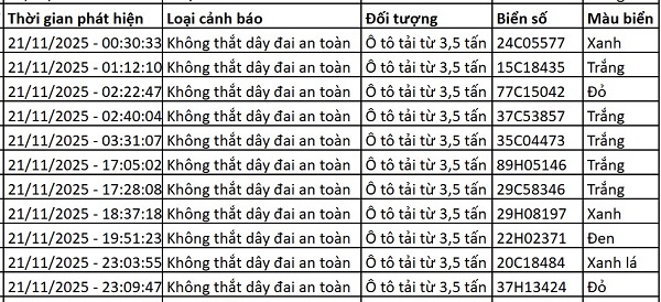 Camera AI phạt nguội, phát hiện nhiều trường hợp không thắt dây đai an toàn, trong đó có cả xe biển xanh, biển đỏ như sau: