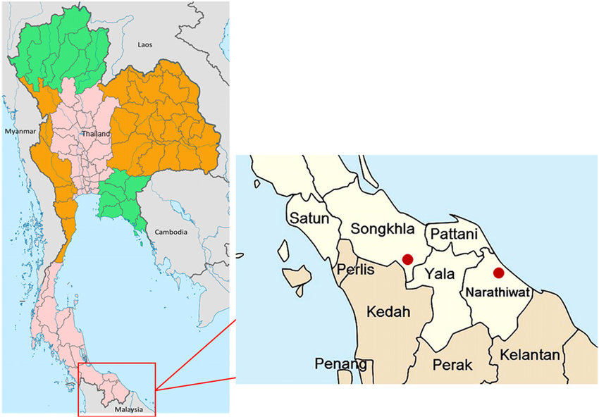 Các nhà điều tra đã tìm thấy hai chiếc xe bán tải bị bỏ lại tại một đồn điền cọ ở huyện Waeng, tỉnh Narathiwat, cách biên giới Malaysia khoảng 1 km.